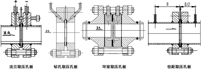屬標準孔板。取壓方式為管道取壓。上游取壓孔中心位于孔板前面一倍管道內徑處。下游取壓孔中心位于距離孔板后端面為管內徑之半的地方。