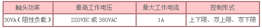 ● 接點(diǎn)裝置電氣參數(shù)及控制形式
